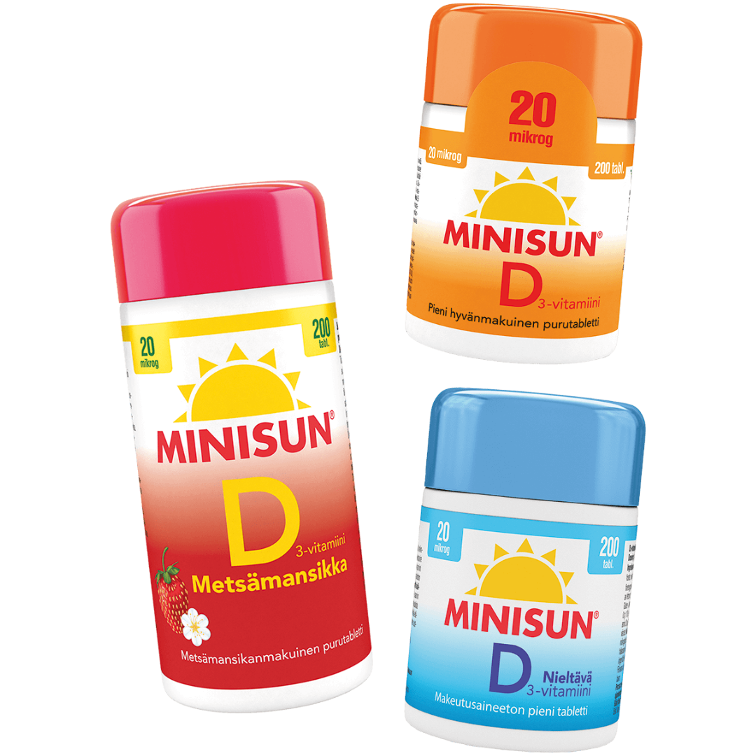 Pureskeltavat tai nieltävät D-vitamiinit päivittäiseen käyttöön.