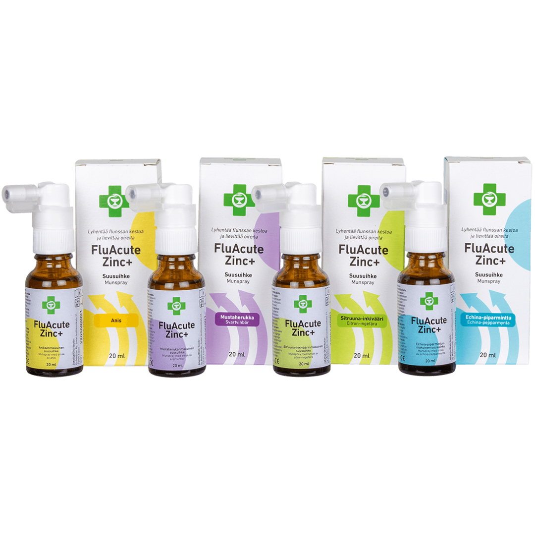 APTEEKKI FLUACUTE ZINC+ 20 ml 4 eri makua 17,50€