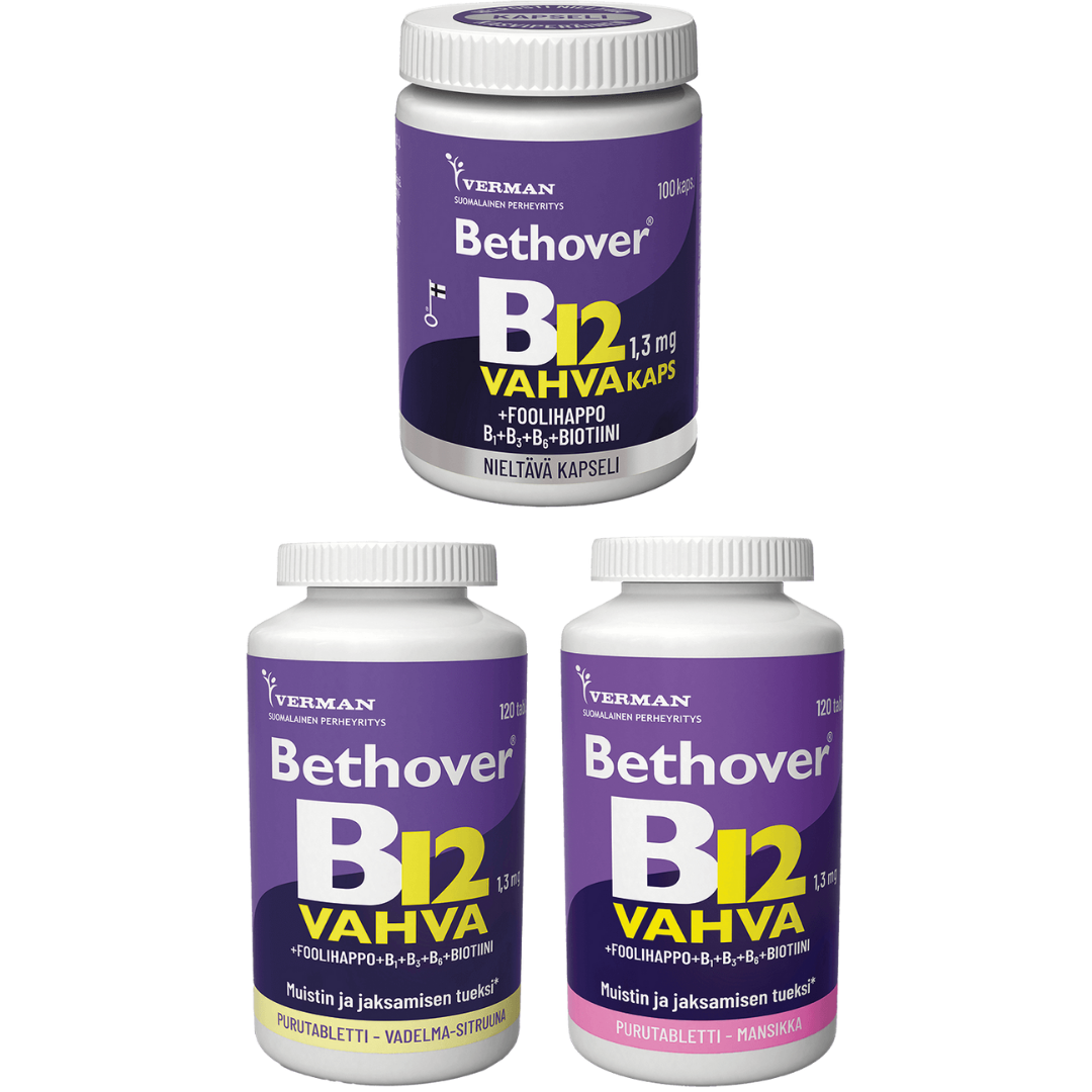 BETHOVER B12 VAHVA 1,3 mg 120 purutabl. tai 100 kaps. 26,90€